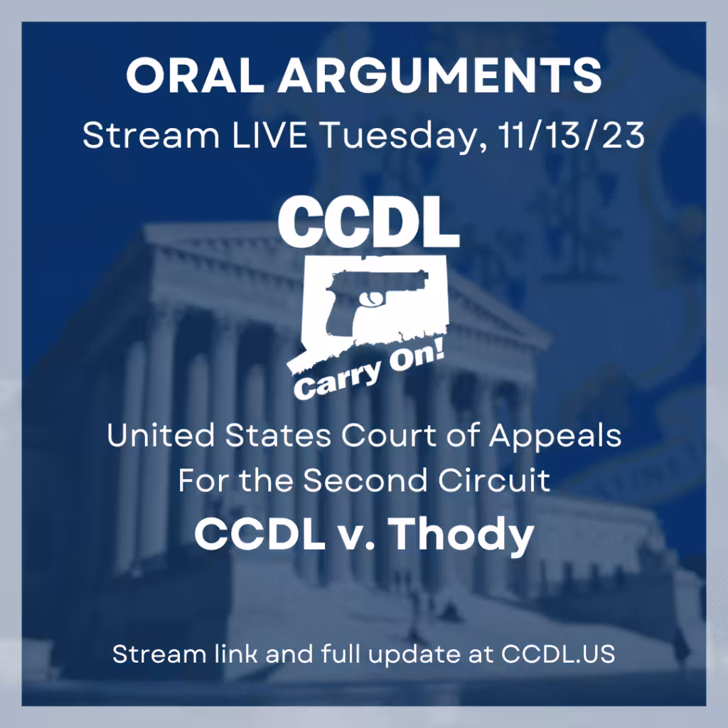 • On August 30, 2021, CCDL along with several other plaintiffs sued Hartford, New Haven, Bridgeport, and Waterbury because pistol permit application processing was slowed to the point of an effective shut down for the residents of these cities.