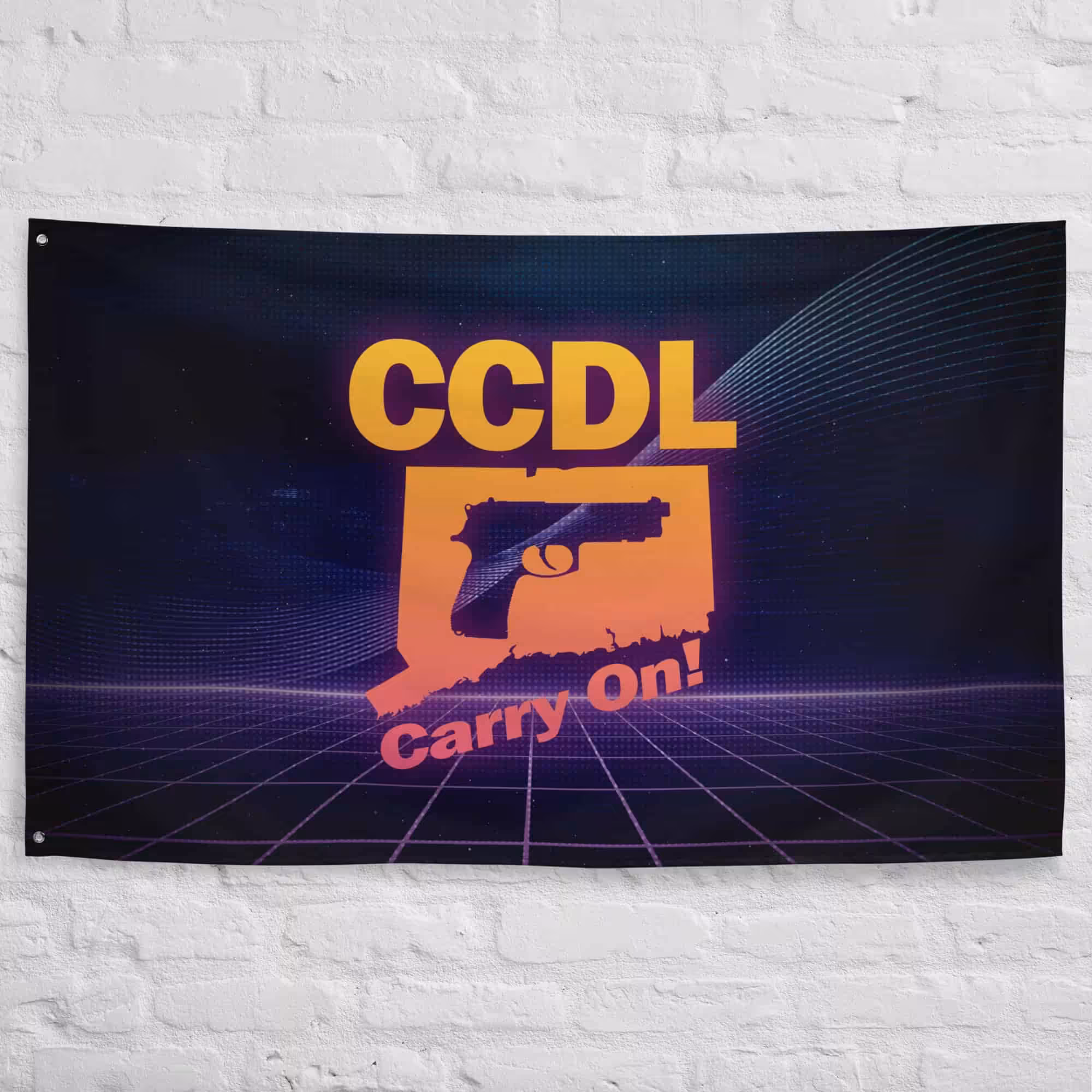 “Retro Wave” 38″ x 60″ flag featuring CCDL’s logo, in honor of the friends we made along the way. Make a statement at home, your business, or at demonstrations.